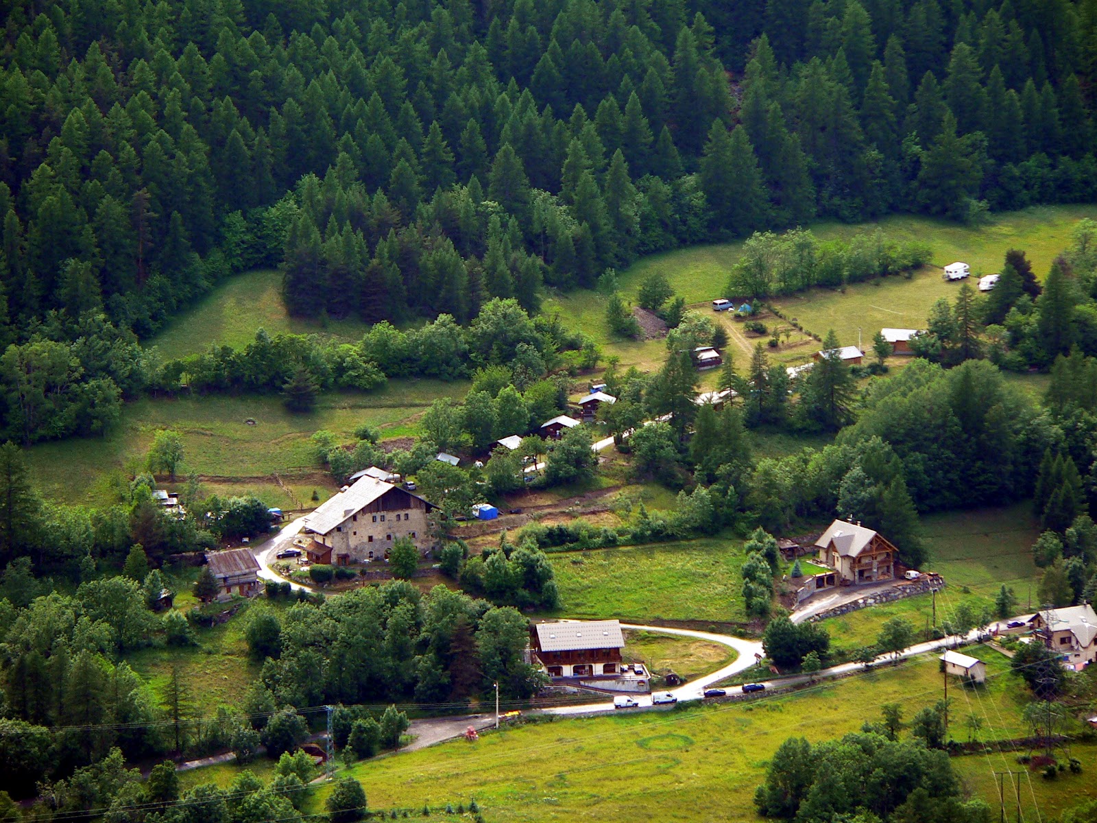 Dans hameau proche de Briançon : Maison de pays de 460m² rénovée avec 5 chambres pour gîte sur 15000m², 9 chalets et 15 emplacements de camping.